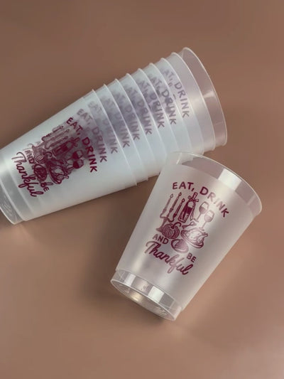These 16oz Frost Flex cups come in a set of 10 in Burgundy ink and are the perfect reusable cup for Thanksgiving get togethers/parties!