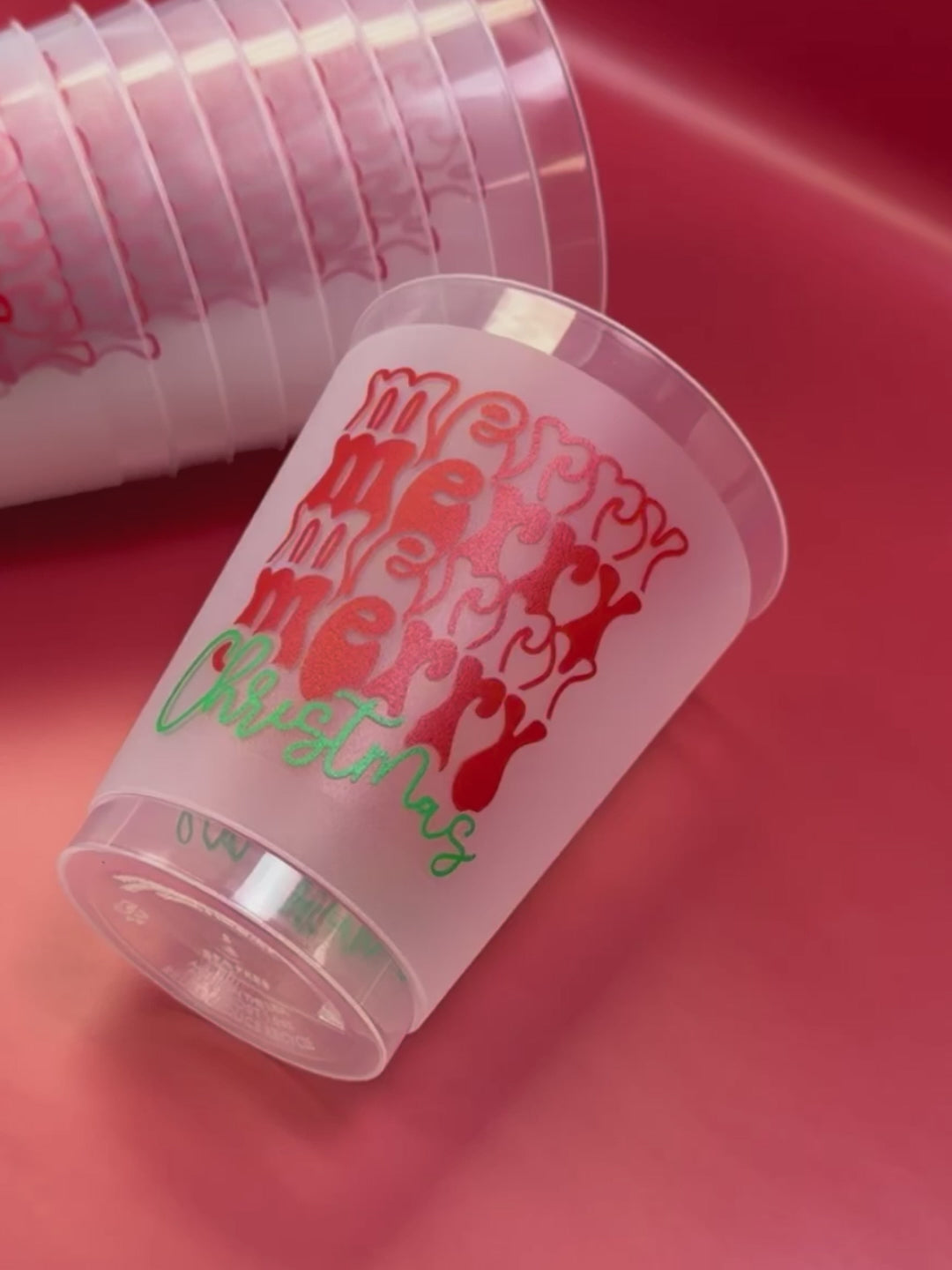 These 16oz Frost Flex cups come in a set of 10 in Red and Green ink and are the perfect reusable cup for Christmas get togethers/parties!